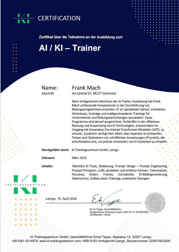 Fundierte KI/AI Kenntnisse erworben durch den AI Explorer Club, AI Institute Club und das KI Trainingszentrum in Lemgo.